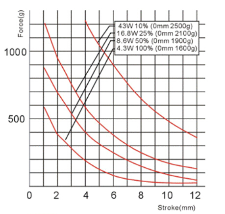 二、U0946推拉式電磁鐵行程和力量的曲線圖: