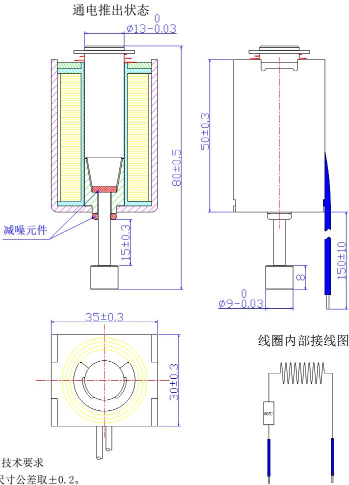 電壓:DC24V       電流:1.5A      功率:36W       行程10mm時力量大于1KG,行程15mm時力量大于400克。