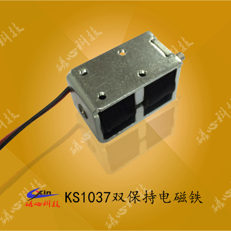 KS1037保持式電磁鐵磁心科技電磁鐵廠家批量生產的一款推拉式雙保持電磁鐵,采用雙向保持的結構、內置永磁鐵,可以在有限的空間內釋放出較大的磁力。