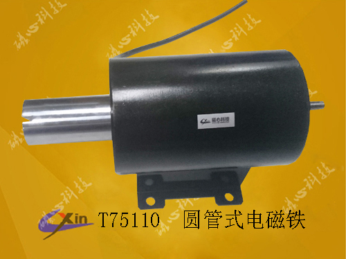 T75110屬于圓管推拉式電磁鐵,產品優勢是行程長,力量大,此款推來電磁鐵在普通的結構基礎上有增加了雙向導向軸承,可以滿足壽命長和噪音小的客戶需求;